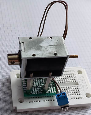 Das Einschalten des Elektromagnets erfolgt über ein Relais. Dies ist notwendig, da der Elektromagnet für 24 VDC ausgelegt
