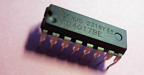 Tasters S1 wird der Zähler CD4017BE gelöscht (Reset).