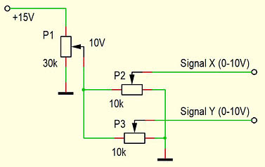 stammen. In der Schaltung werden sie einfach mit zwei Potenziometern gebildet. Ein Spannungsteiler, der mit einem 30 kOhm –
