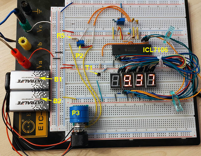 In dieser Übung experimentieren wir ein wenig mit der integrierten Schaltung ICL7106 und bauen ein einfaches Voltmeter, das eine Spannung im