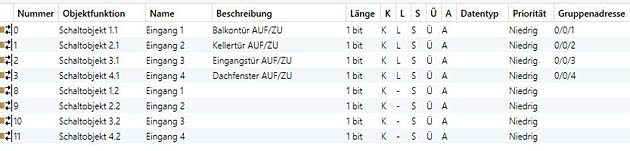 Nachdem alle Parameter zufriedenstellend festgelegt wurden, können die Gruppenadressen den zuständigen Objekten zugeordnet werden. Hier sehen